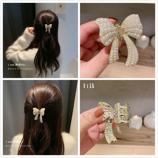 Kẹp Tóc Hình Nơ Đính Ngọc Trai Phong Cách Hàn Quốc Xinh Xắn Cho Nữ