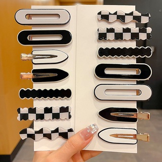 Kẹp Tóc Mỏ Vịt Không Đường May Hai Mặt Màu Trắng Đen Phong Cách Hàn Quốc Dành Cho Nữ