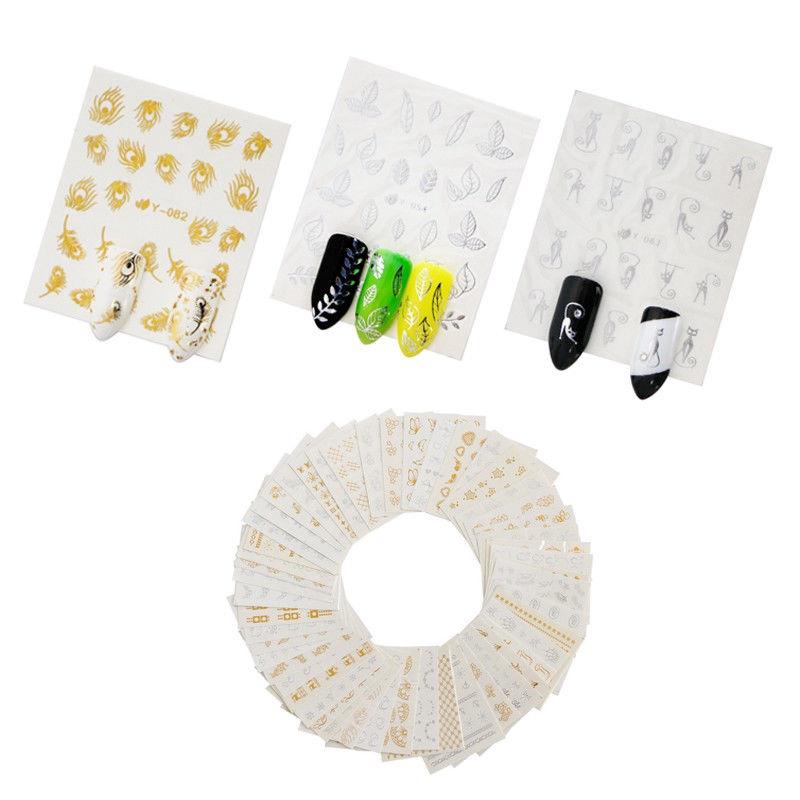 30 Miếng Dán Móng Hình Nhện Màu Vàng / Bạc