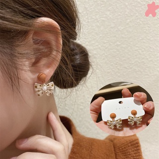 ★★★ 1 Đôi Bông Tai Họa Tiết Chấm Bi Phối Nơ Phong Cách Thu Đông Hàn Quốc Cá Tính