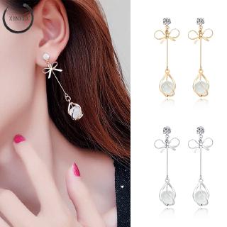 Khuyên Tai Dáng Dài Đính Nơ Xinh Xắn Phong Cách Hàn Quốc