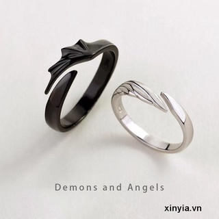 Nhẫn Mạ Bạc 925 Hình Thiên Thần Ác Quỷ Có Thể Điều Chỉnh Thời Trang Cho Cặp Đôi