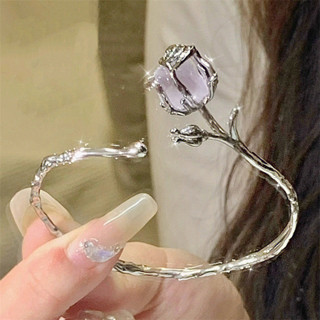 Vòng Tay Dạng Hở Mạ Bạc 925 Hình Hoa Hồng Thời Trang Cho Nam Nữ