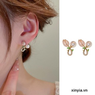 Bông Tai Hình Hoa Tulip Đính Ngọc Trai Tinh Tế Thời Trang