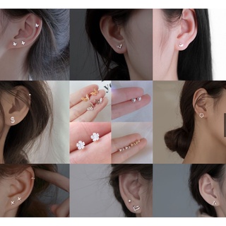 Đôi khuyên tai mạ bạc 925 hình thiên nga / bướm / hoa / sừng hươu / thiên nga thiết kế tinh xảo