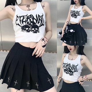 XIXI Áo Croptop Sát Nách In Hình Đầu Lâu Phong Cách Gothic Cổ Điển 90s Thời Trang Cho Nữ