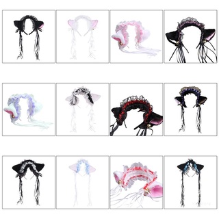 Cài tóc hình tai mèo gắn chuông và dây ruy băng tua rua dễ thương phong cách lolita cho nữ