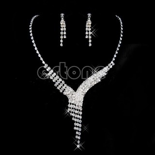 Set dây chuyền khuyên tai đính đá hình chiếc lá dễ thương