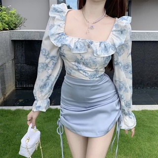 Áo Croptop Tay Dài Loe In Hoa Dễ Thương Thời Trang Mùa Hè Cho Nữ