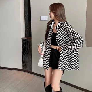 Áo Sơ Mi Nữ Dài Tay Dáng Rộng Họa Tiết Caro Phong Cách Hàn Quốc