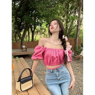Áo Croptop Trễ Vai Tay Phồng Ngắn Đính Nơ Ngọt Ngào Cho Nữ