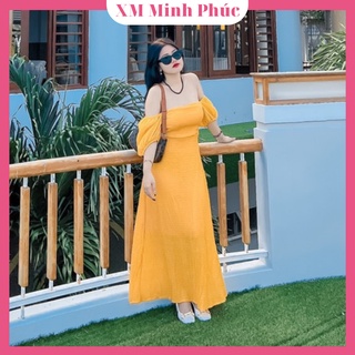 Đầm Hở Lưng Maxi Trễ Vai 3 Màu Vàng, Hồng, Trắng Thiết Kế Dáng Dài Phù Hợp Đi Chơi, Đi Biển Xm Minh Phúc