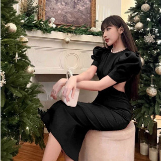 Đầm váy nữ hở lưng thiết kế ôm body tay phồng 3 màu đen, trắng, đỏ tươi mới cho nàng đi chơi đi tiệc thời trang nữ MP