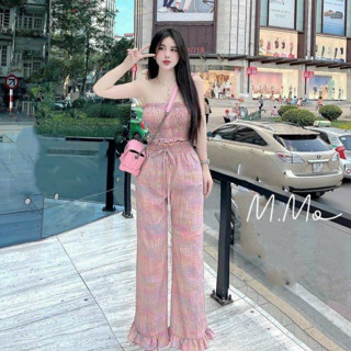 Set đồ nữ đi chơi, sét bộ nữ mặc nhà màu hồng karo hottrend áo quây phối quần ống rộng phong cách tiểu thư cho nàng- MP