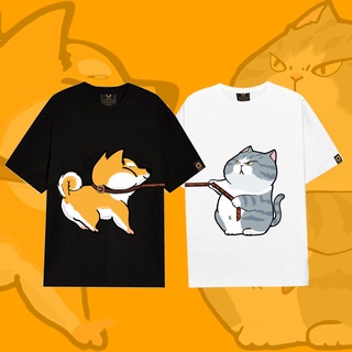 Áo thun cặp đôi In hình Chó Mèo Kéo Dây siêu dễ thương, Áo phông unisex Nam Nữ