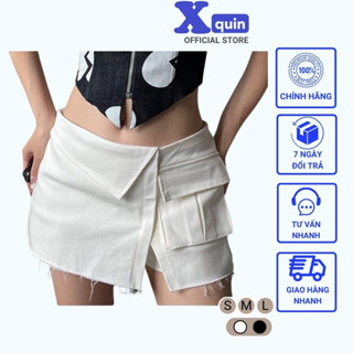 Quần giả váy nữ kiểu đắp chéo phối túi hộp Xquin, Chân váy chữ A 2 lớp phong cách nặng động trẻ trung
