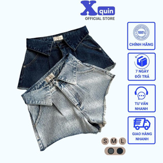 Quần short jeans nữ ống rộng kiểu lưng gấp Xquin, Quần đùi nữ lưng cao kiểu lật bảng lưng phong cách Hàn Quốc