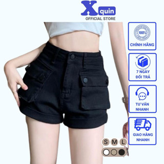 Quần sọt kaki nữ lưng cao phối túi hộp lật lai Xquin, Quần short đùi kaki có túi 2 bên phong cách Hàn Quốc