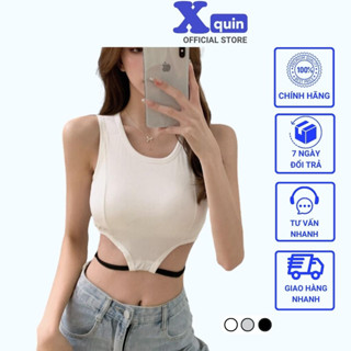 Áo 2 dây có sẳn mút ngực in chữ trước ngực Xquin, Áo croptop nữ ba lỗ vạt bầu siêu hack dáng