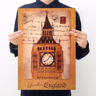 Poster Hình Tòa Nhà Big Ben Bằng Giấy Kraft Phong Cách Retro Trang Trí Quán Cà Phê / Bar F018