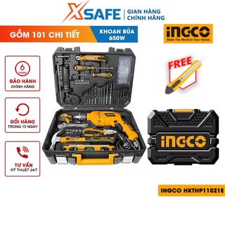 Bộ máy khoan búa cầm tay 650W 13mm kèm 100 dụng cụ INGCO HKTHP11021E -Gồm 1 máy khoan cầm tay công suất 650w và phụ kiện