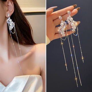 Bông Tai Mạ Bạc 925 Đính Ngọc Trai Phối Tua Rua Thời Trang Dự Tiệc Cho Nữ
