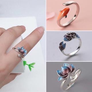 Nhẫn hở RINHOO FRIENDSHIP kiểu hoa/ cá màu gradient đơn giản thời trang cho nam và nữ