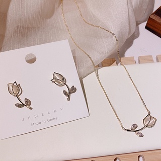 Vòng cổ/ Khuyên tai RINHOO FRIENDSHIP hoa tulip đính đá thời trang phong cách Hàn Quốc cho nữ