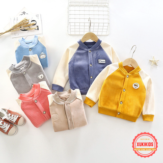 Áo len dài tay khuy cài in hình ngộ nghĩnh Hàng Quảng Châu cao cấp cho bé trai bé gái mặc thu đông