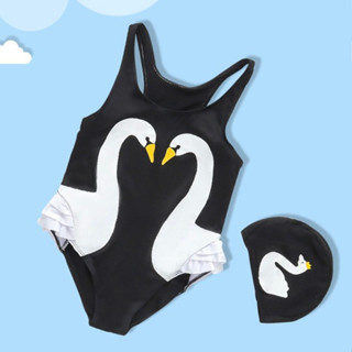 Bộ đồ bơi liền thân thiên nga đen, bikini cho bé gái tặng kèm mũ bơi hàng Quảng Châu cao cấp
