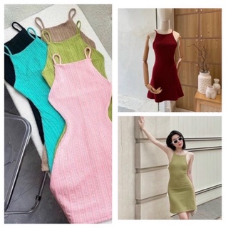 Đầm Yếm body hai dây mảnh A (nhẹ Chất Liệu len đan QC( Form chuẩn hình thật bao đẹp dày dặn) giãn tốt.