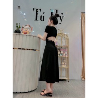 [HOTT] (D05)Đầm nữ ôm body tay cộc xoè dáng thon cao maxi dây buộc sau lưng