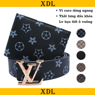 Combo ví da nam và thắt lưng Lv may cạnh siêu bền cho nam, combo caro mới nhất CBMN