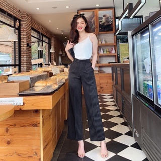 Quần ống suông nữ có chun sau lưng, quần kẻ sọc nữ ống suông