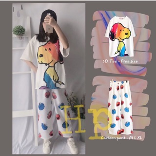 Sét 2 áo crt + quần bò rộng rách gấu THP865