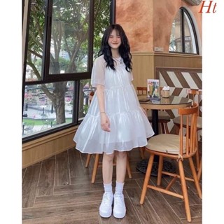 Váy babydoll trắng chất tơ lụa cao cấp H2V668