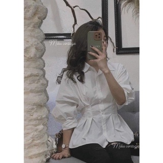 Áo sơ mi rúm eo tay bồng phong cách hàn quốc