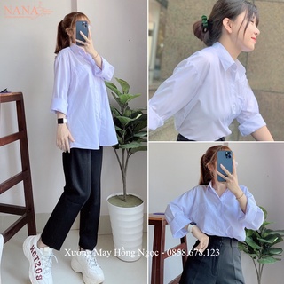 Áo sơ mi nữ trắng đi học tay lỡ cổ bẻ basic form rộng vừa - Sơ mi đi học sinh nữ trắng tay cộc