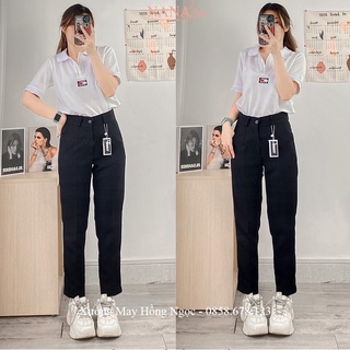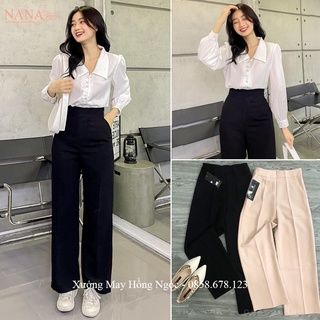 Quần tây nữ cạp liền lưng cao 2 nút ống đứng màu Đen dáng quần vải nữ công sở cạp cao co giãn nhẹ đi học làm duyên dáng