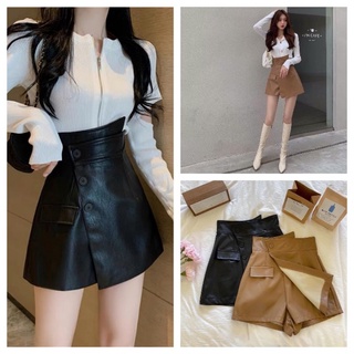 Quần giả váy quần da thiết kế cạp 3 khuy cao vạt lệch