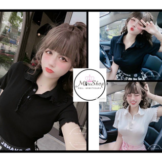 Áo croptop POLO VIỀN BÈO Cách Điệu 2 màu siêu cá tính