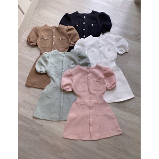 VÁY XOÈ CỔ PHỐI NÚT NGỌC