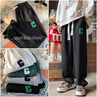Quần Ống Rộng Chất Tổ Ong Chữ C Quần Thể Thao Unisex Dày Dặn Phong Cách Ulzzang Hàn Quốc Trẻ Trung Năng Động -M22