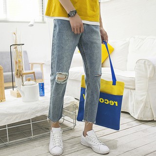 Quần jean nam ống rộng rách B7- phong cách hàn quốc - jean dày cao cấp hàn quốc