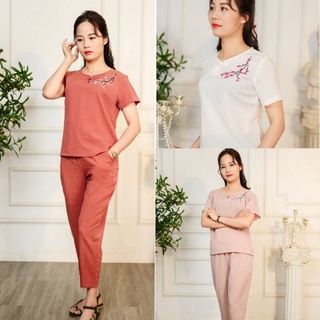 Bộ đồ nữ họa tiết thêu hoa thiết kế cúc tàu sang trọng. chất liệu đũi mềm mát thích hợp mọi lứa tuổi Ảnh thật 100%