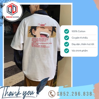 Áo thun tay lỡ form rộng hoạt hình Luffy 1986, áo phông Unisex nam nữ