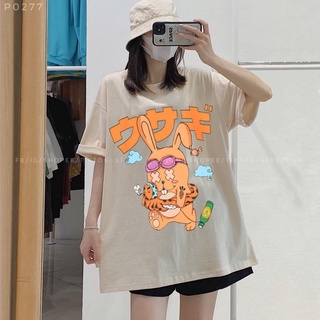[ Rẻ vô địch ] Áo thun cotton tay lỡ dáng rộng unisex - thỏ X