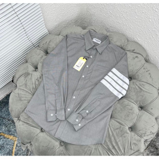 Sơ mi Thom xám vệt tay trắng thêu