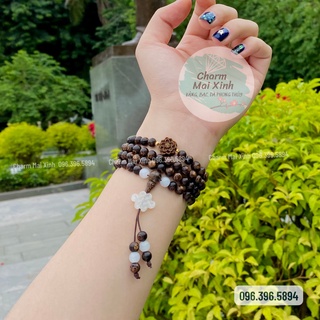 [TẶNG HỘP] Vòng Tay Trầm Hương mix Charm Hoa Sen Tốc & Sánh - vòng tay gỗ nam, nữ Loại Đẹp, Tự Nhiên