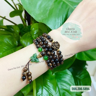 Vòng Trầm Hương Sánh Chìm mix Charm Bánh Xe Pháp Luân Hồi - Vòng Tay Phong Thuỷ Nam Nữ May Mắn - Hàng Cao Cấp Loại 1